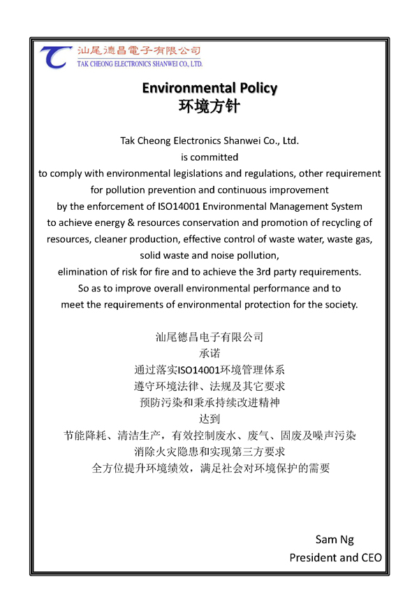 首頁(yè) >> 管理體系 >> 環(huán)境體系 >> 環(huán)境方針